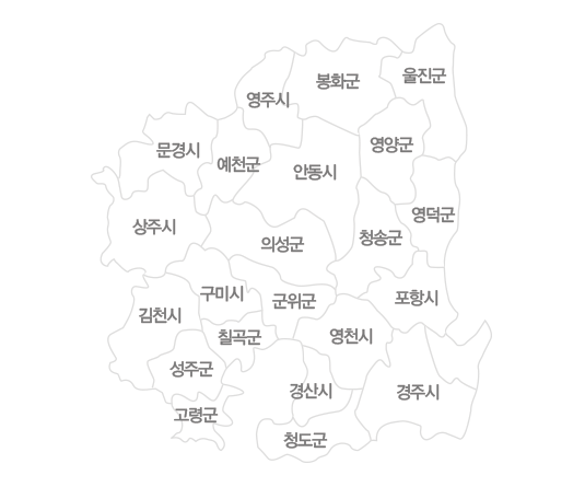 경산시 경주시 고령군 구미시 군위군 김천시 문경시 봉화군 상주시 성주군 안동시 영덕군 영양군 영주시 영천시 예천군 울릉군 울진군 의성군 청도군 청송군 칠곡군 포항시